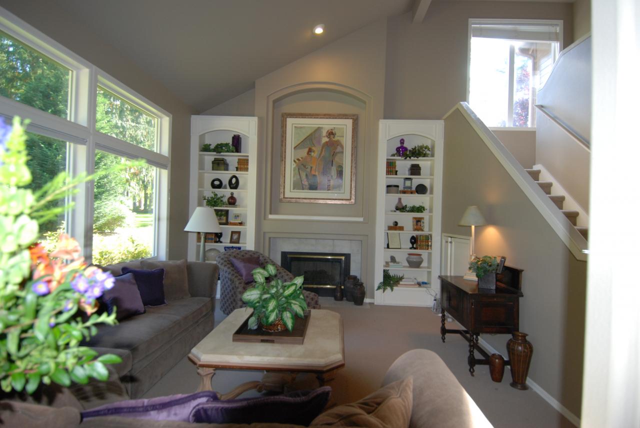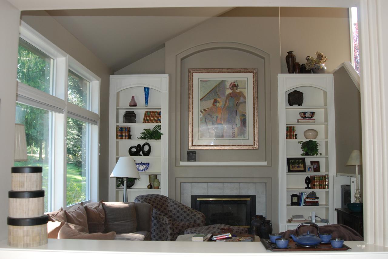 Our client desired a less cluttered look, along with a more comfortable seating area for relaxing and reading. All the furniture and most of the asseccories were already in the home. With the purchase of draperies and a few additional asseccories, we were able to give her the look and feel she needed and desired.